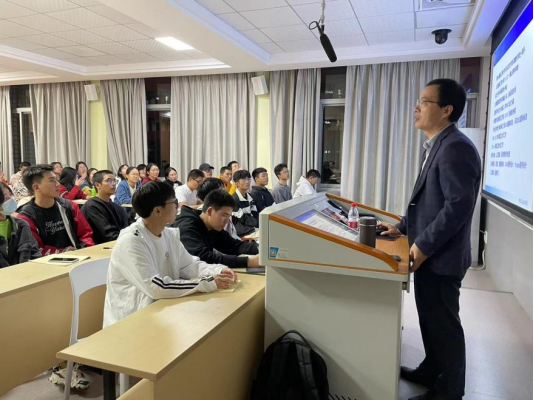副院长徐雪松教授就学院的发展历史、师资力量、科研平台、教学软硬件条件等向同学们作了详细介绍,使同学们了解到前沿交叉学院是在陈晓红院士引领下,面向国家重大需求、面向经济主战场,聚集海内外优秀人才,开展前瞻性创新性研究的学院。接着,他就工业智能专业的由来、专业设置等向同学们进行了阐述,使同学们认识到工业智能专业是新时代数字经济发展下产生的新专业,融合了智能制造和人工智能新技术,具有广阔的前景。